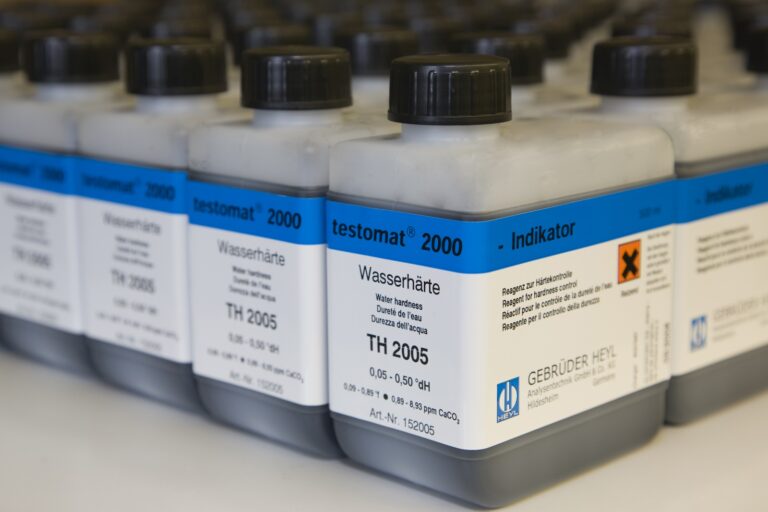 Les réactifs TESTOMAT® sont des substances chimiques utilisées pour mesurer les paramètres de l’eau en combinaison avec l’analyseur d’eau TESTOMAT®. Le TESTOMAT® est un analyseur automatisé qui fournit une mesure rapide et précise de divers paramètres de l’eau, notamment le chlore, la dureté totale, la dureté carbonatée et d’autres paramètres importants.